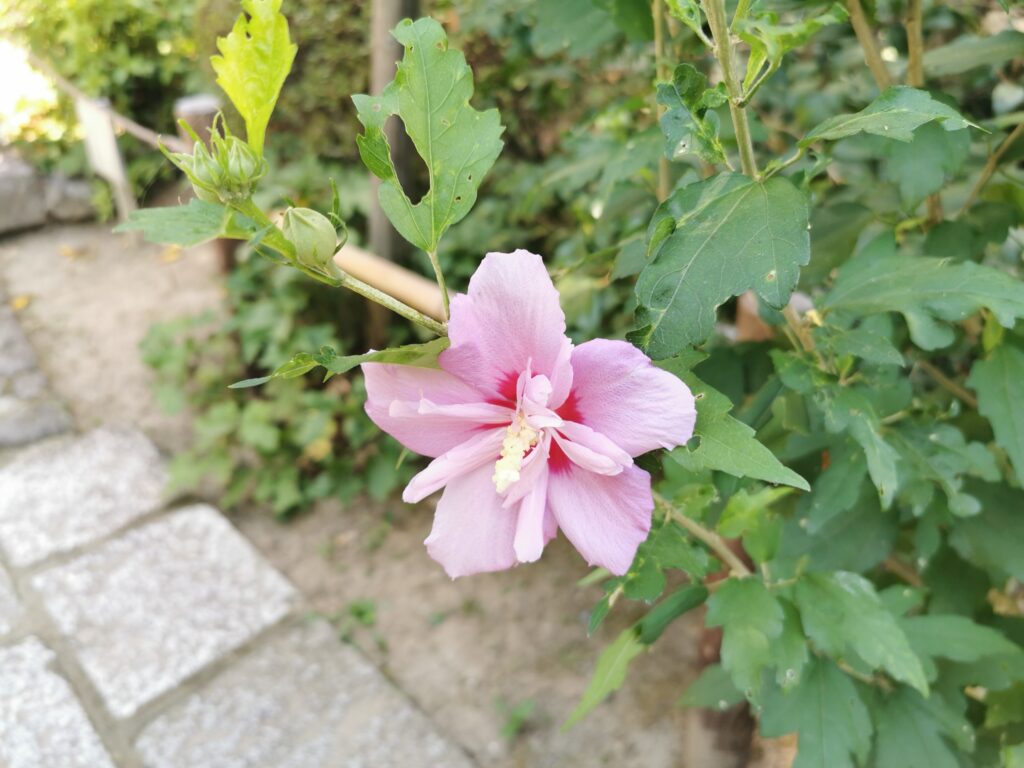 今は、アジサイが終わって、ピンク色や白色のムクゲの花が沢山咲いています。