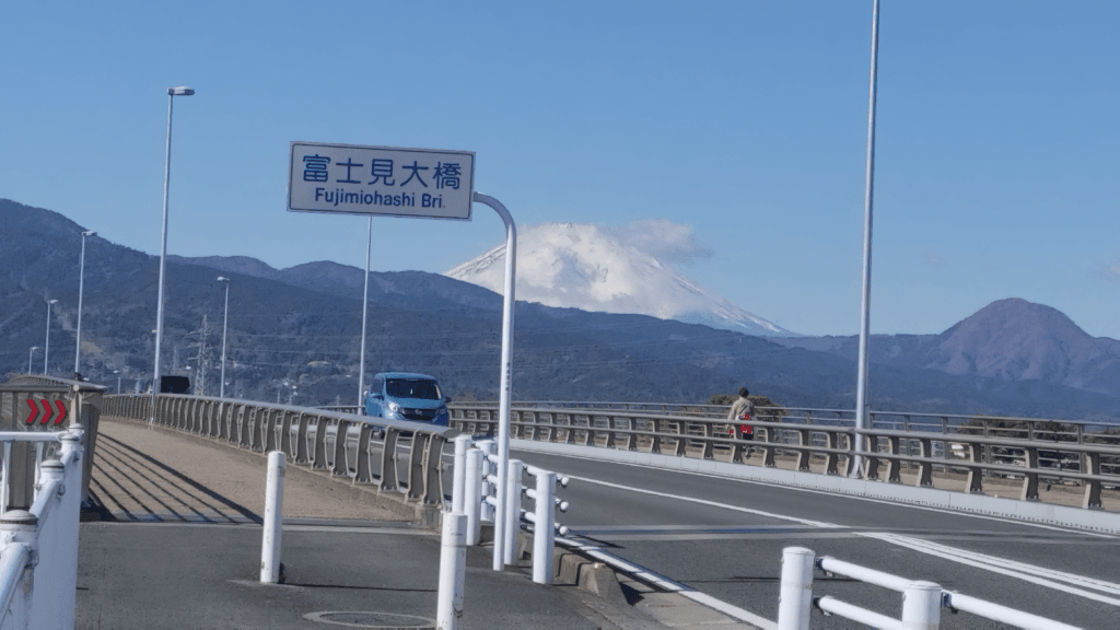 小田原市の酒匂川にかかる「富士見大橋」から見る富士山があまりに綺麗だったので思わず「わあ!」と声が出ました(次の写真)。