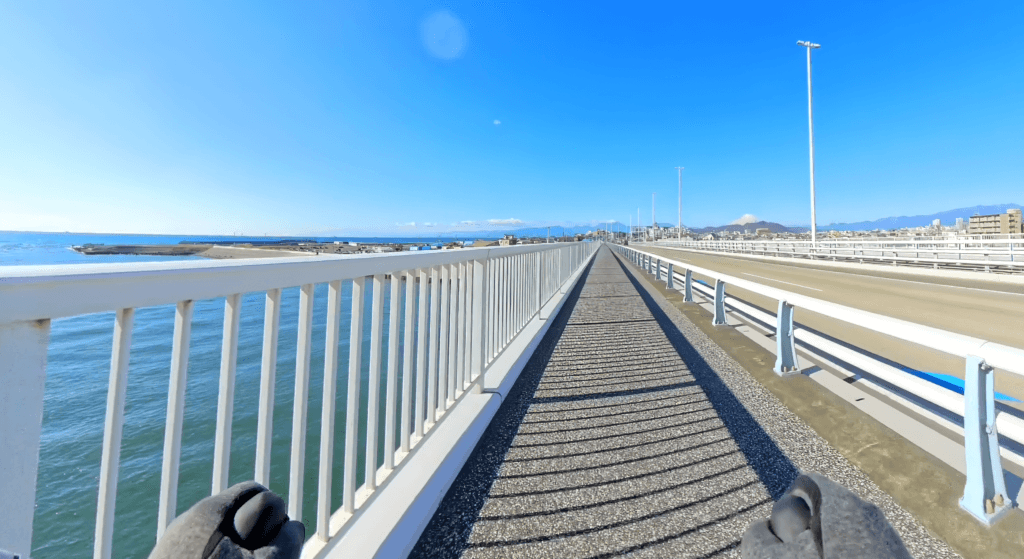 次の写真は茅ヶ崎市と平塚市の境にある相模川にかかる相模大橋を渡っているところです。