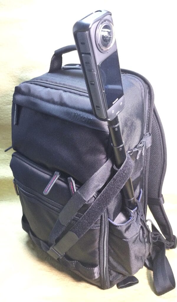 これで、割としっかりと『見えない自撮り棒』をバッグパックに取り付けられました。