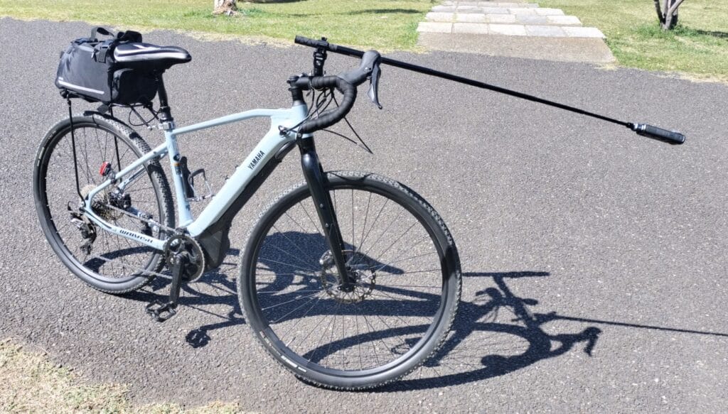 このやり方でどうしても自撮り棒をハンドルマウントに付けたい場合は、自撮り棒の長さは短めにして、上向きに伸ばす使い方にとどめた方が良いと思います。