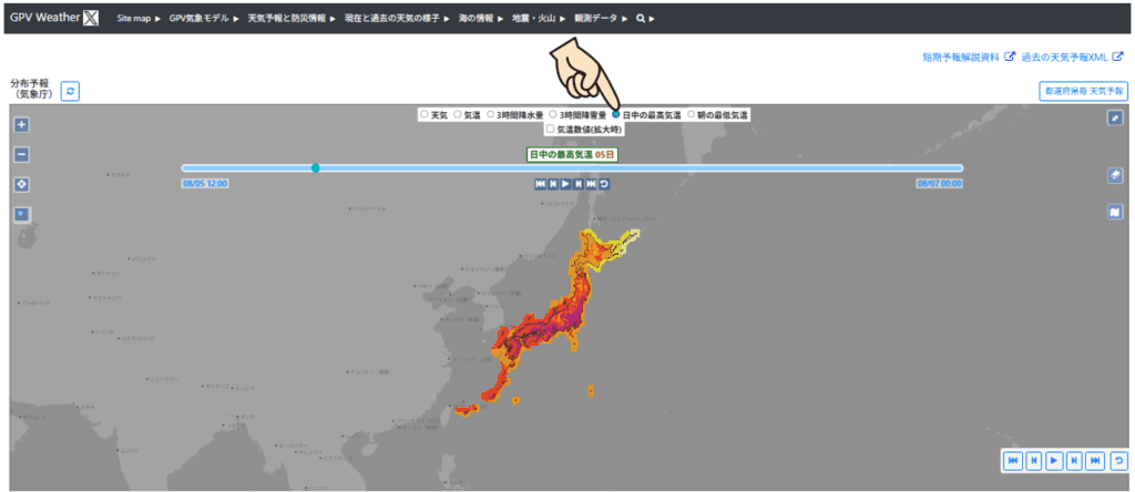 「GPV気象予報」を使えば、最新の最高気温が一目瞭然