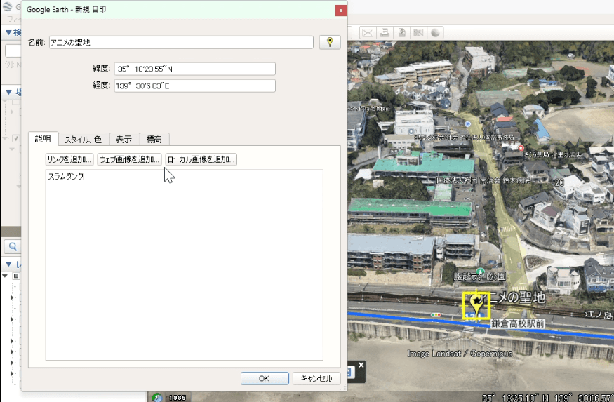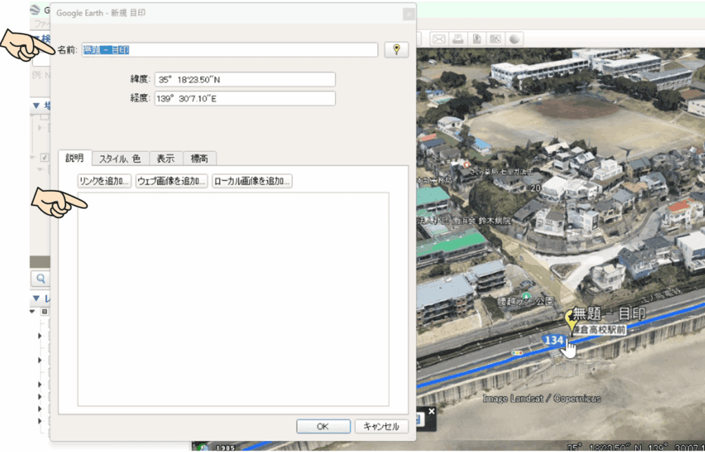 この例では、江ノ電の鎌倉高校前駅のところにマークしました。