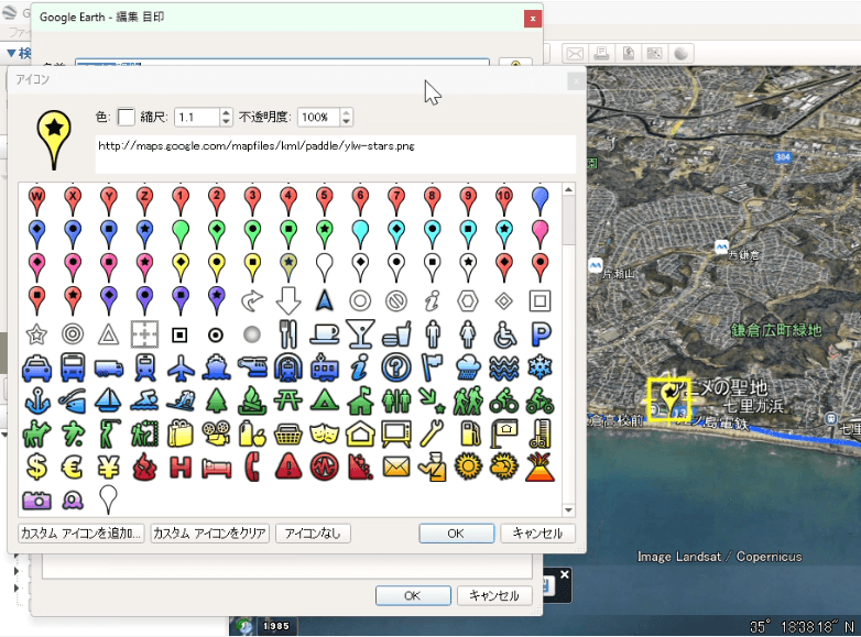 例えば、江の島を出発地点にしていますが、これのアイコンを変更してみます。