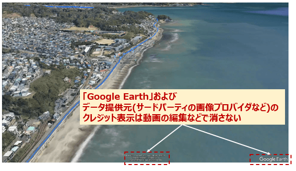 (参照:Google マップ / Google Earth 追加利用規約、Google Earth ポリシーとガイドライン)