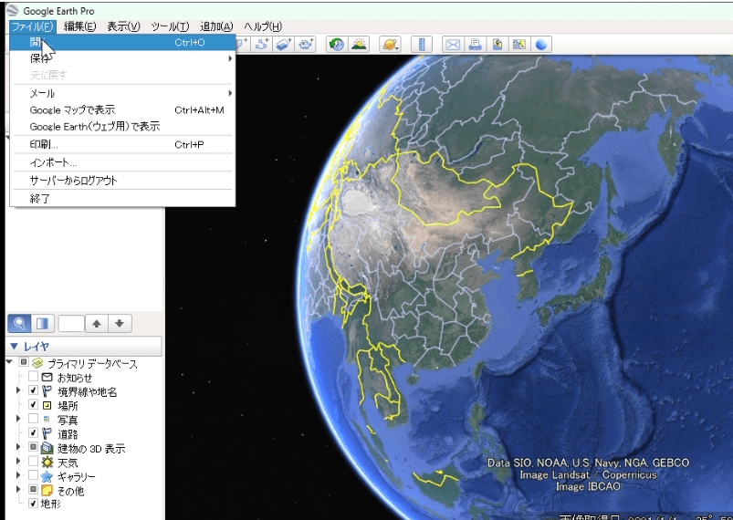 1. Google Earth Proを起動し、KMLファイルを読み込む