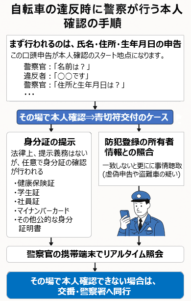を踏まえて、自転車の交通違反で青切符の交付の際、「本人確認」がどう行われるのかを分かりやすく解説します。